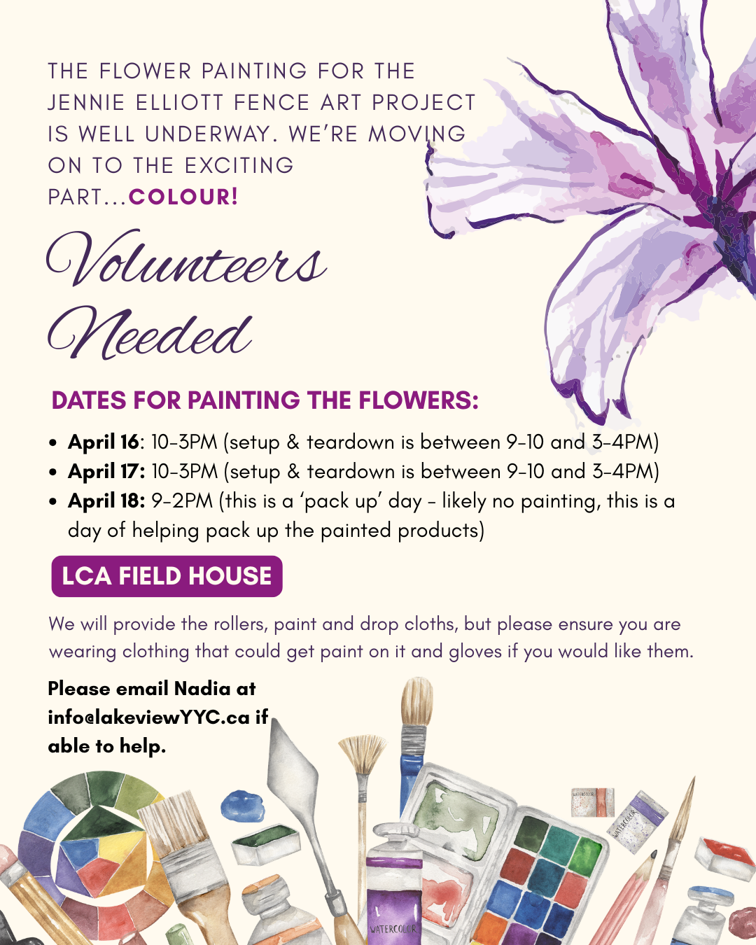 We are looking for volunteers to help with painting the flowers for the Jennie Elliott fence art project.